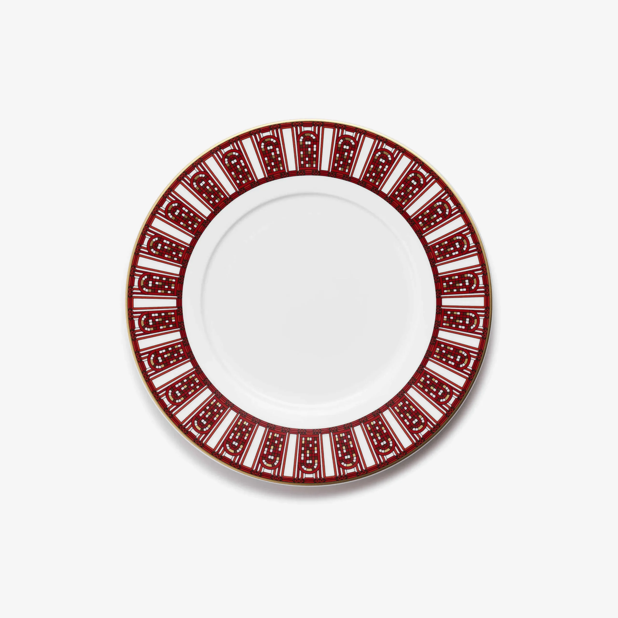 The Arcadia Red collection is a porcelain service comprising four sizes of plates and a “timbale”. Adorned with the Arcadia pattern, the dazzling white porcelain is enhanced by Baccarat’s signature red and precious touches of gold. An ode to joie de vivre, the Arcadia Red service harmonizes vibrantly with Baccarat’s crystal creations, accompanying moments of sharing and celebration. Arcadia is the pattern inspired by the arched windows of Baccarat’s Manufacture, celebrating what happens behind them, where for generations, passionate artisans have been creating outstanding masterpieces to enchant the world.