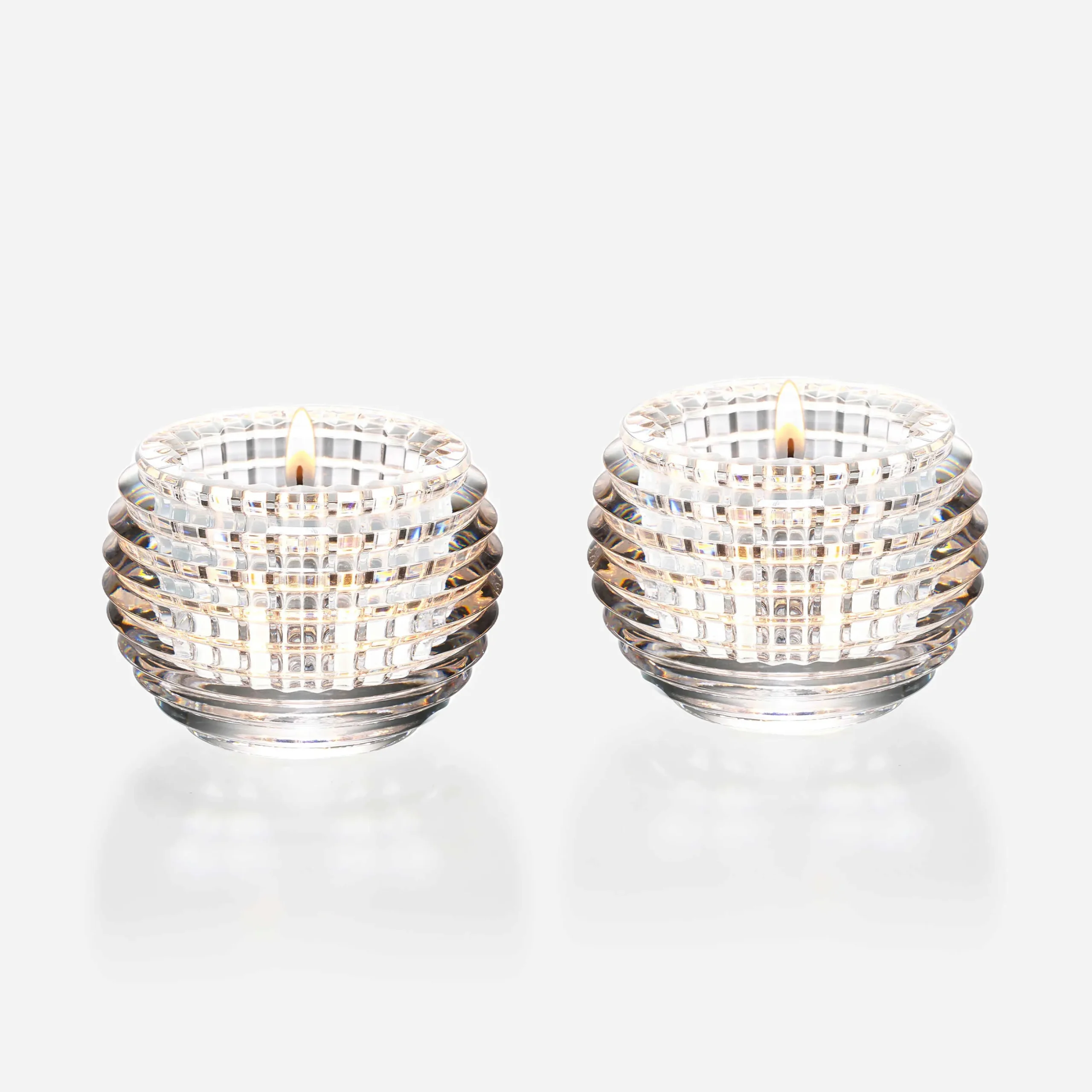 The Eye Candle-Jar in Baccarat crystal exudes an extraordinary play on light thanks to the exceptional cut. Available in clear, red and gold, the Eye candle-jar brilliantly reflects candle-light. Fashionable colours make this a modern piece with unmatched technical sophistication. The collection features horizontal exterior cuts and vertical interior cuts and is also developed into rectangular and oval vases.