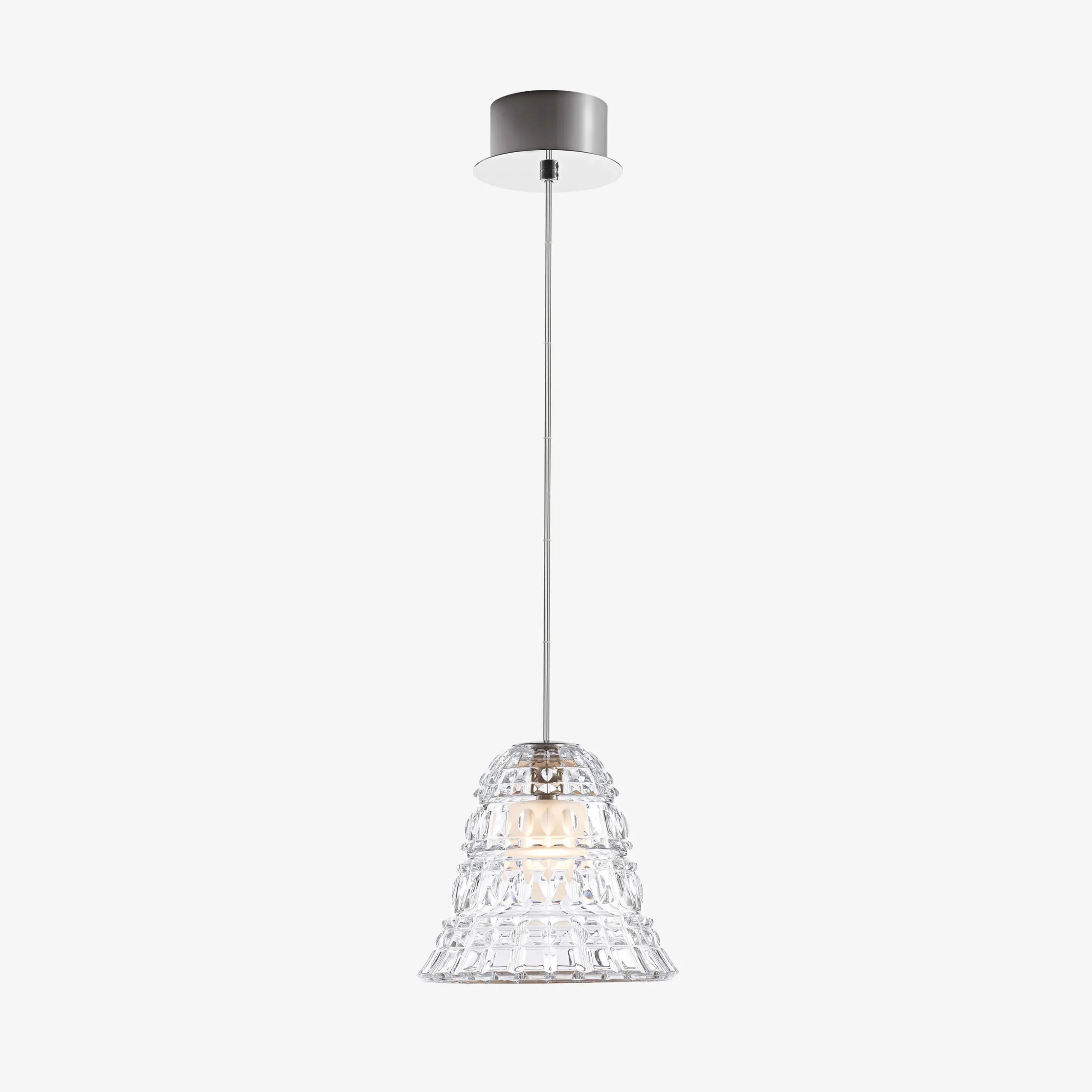 A master in the art of harmoniously blending past and future, craftsmanship and innovation, whether stylistic or technical, Marcel Wanders drew inspiration from Baccarat’s emblematic chandelier clochettes to design a lighting collection imbued with elegance and enchantment. Like a suspended dream, its clochettes dance in the air, held in place by an almost invisible thread. Adorned with the New Antique cut motif, they amplify light in a symphony of sparkling reflections.