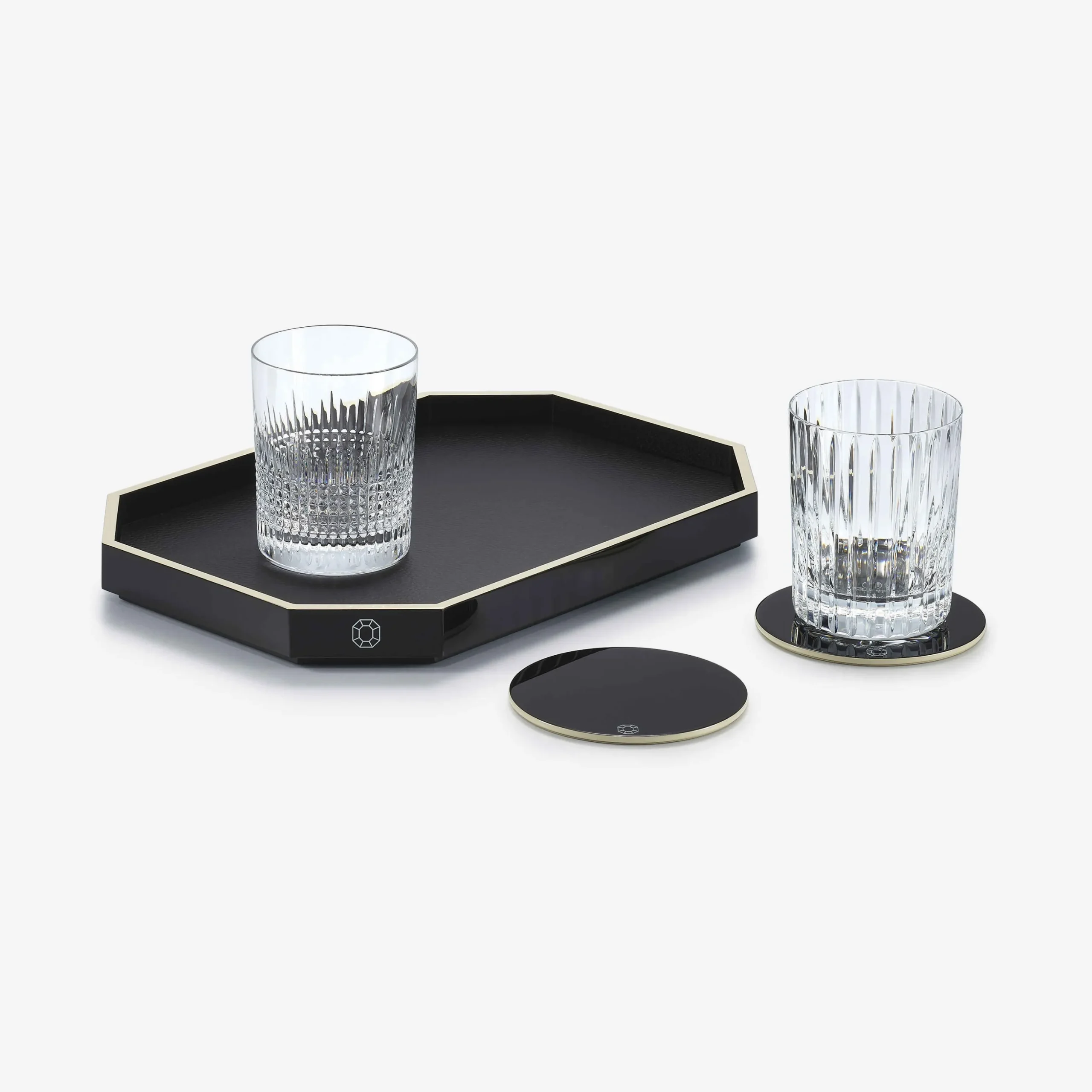 The Octogone tray is a beautiful, lacquered piece, available in 3 sizes. Inspired by the red octagonal tassel, the iconic signature of Baccarat, a series of refined lacquered accessories comprise these new pieces, which come to enlarge the Octogone collection. The tray, in the shape of an octagon, is meticulously handcrafted using ancestral artistry. Its brilliant surface captures the light and highlights Baccarat’s crystal creations. Each tray comes with a removable leather insert, adding an elegant contrast of materials and textures. The Octogone tray exists in a variety of shades, enriched over the seasons and matched with the coaster from the same collection.