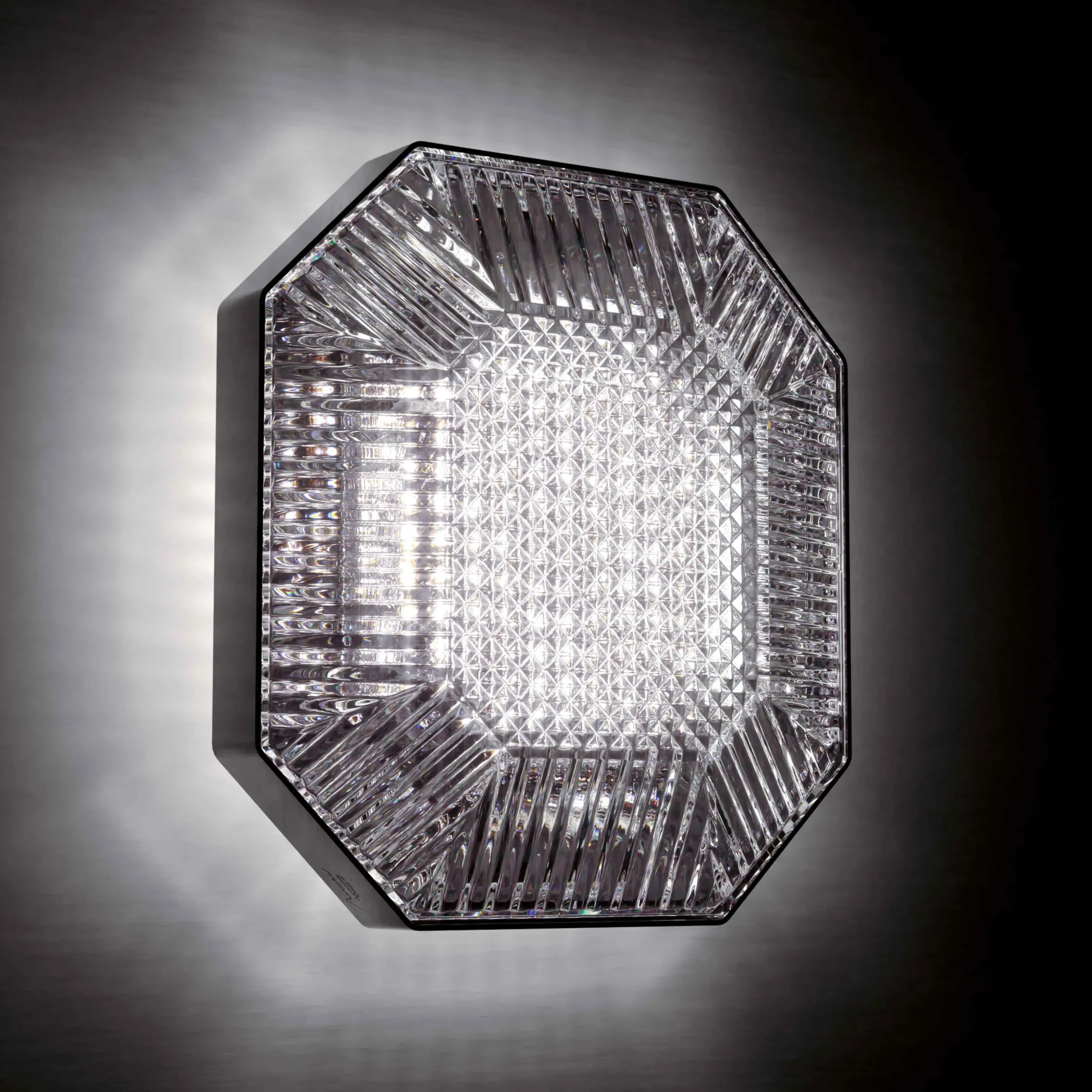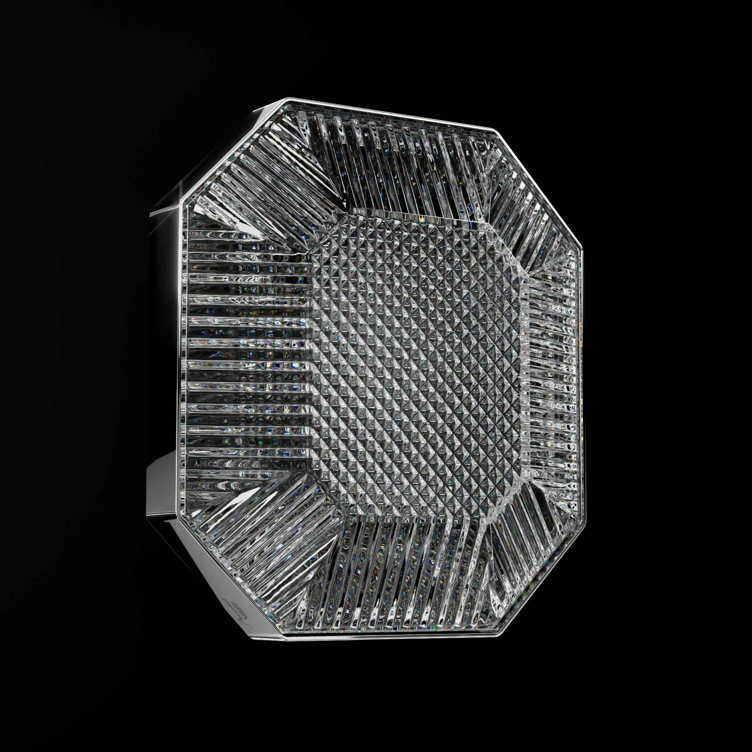 “Octogone is an architectural creation that celebrates the heritage of Maison Baccarat. A journey from earthly to celestial, where the radiance and purity of crystal are transcended by light.”- Ambroise MaggiarThrough the Octogone lighting collection, imagined by designer Ambroise Maggiar, Baccarat reinterprets one of its most iconic symbols: the octagonal pendant, a signature of its chandeliers for generations.A multidisciplinary designer, Ambroise Maggiar combines poetic sensitivity with methodical precision to create unique pieces that fuse heritage and innovation. Minimalist and avant-garde, the Octogone collection is a tribute to creativity offering limitless modularity. Conceived to adapt to any space, it can be displayed with playful freedom. As a ceiling lamp, wall unit or ceiling unit, with 1 or 3 light sources, the elements can be combined to the heart’s desire, giving rise to personalized compositions. Each piece, intricately cut with subtle patterns, sculpts the light and reveals a captivating play of reflections. Paired with crystal, the mirror-polished metal highlights the octagonal silhouette in striking contrast.Born in the XIXth century, Baccarat’s octagonal pendant has been continually reinvented over the years. Transformed into a light fixture, it embraces the XXIst century with boldness, embodying a resolutely contemporary art de vivre.Using the Casambi app, available on smartphone, LED intensity and temperature can be adjusted to create a personalized lighting atmosphere.